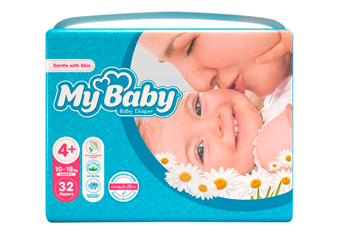 پوشک بچه مای بیبی حاوی لوسیون با عصاره بابونه می باشد. لوسیون موجود در سطح پوشک، حساسیت پوستی را کاهش می دهد و موجب شادابی پوست کودک می شود. این محصول دارای چسبهای کناری با قابلیت کشسانی متناسب با پوشک بوده و به راحتی کودک هنگام حرکت کمک می کند. این پوشک علاوه بر لطافت و نرمی ، قدرت جذب رطوبت بالایی دارد.