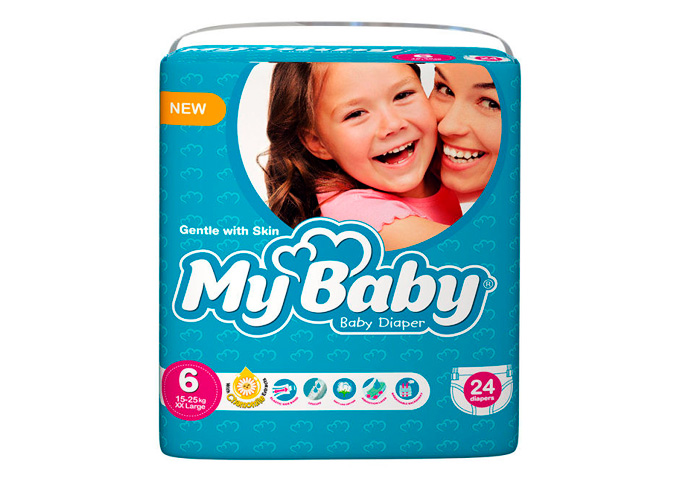 پوشک بچه مای بیبی حاوی لوسیون با عصاره بابونه می باشد. لوسیون موجود در سطح پوشک، حساسیت پوستی را کاهش می دهد و موجب شادابی پوست کودک می شود. این محصول دارای چسبهای کناری با قابلیت کشسانی متناسب با پوشک بوده و به راحتی کودک هنگام حرکت کمک می کند. این پوشک علاوه بر لطافت و نرمی ، قدرت جذب رطوبت بالایی دارد.
