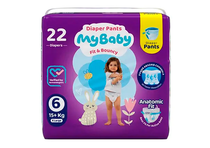 پوشک بچه مای بیبی حاوی لوسیون با عصاره بابونه می باشد. لوسیون موجود در سطح پوشک، حساسیت پوستی را کاهش می دهد و موجب شادابی پوست کودک می شود. این محصول دارای چسبهای کناری با قابلیت کشسانی متناسب با پوشک بوده و به راحتی کودک هنگام حرکت کمک می کند. این پوشک علاوه بر لطافت و نرمی ، قدرت جذب رطوبت بالایی دارد.